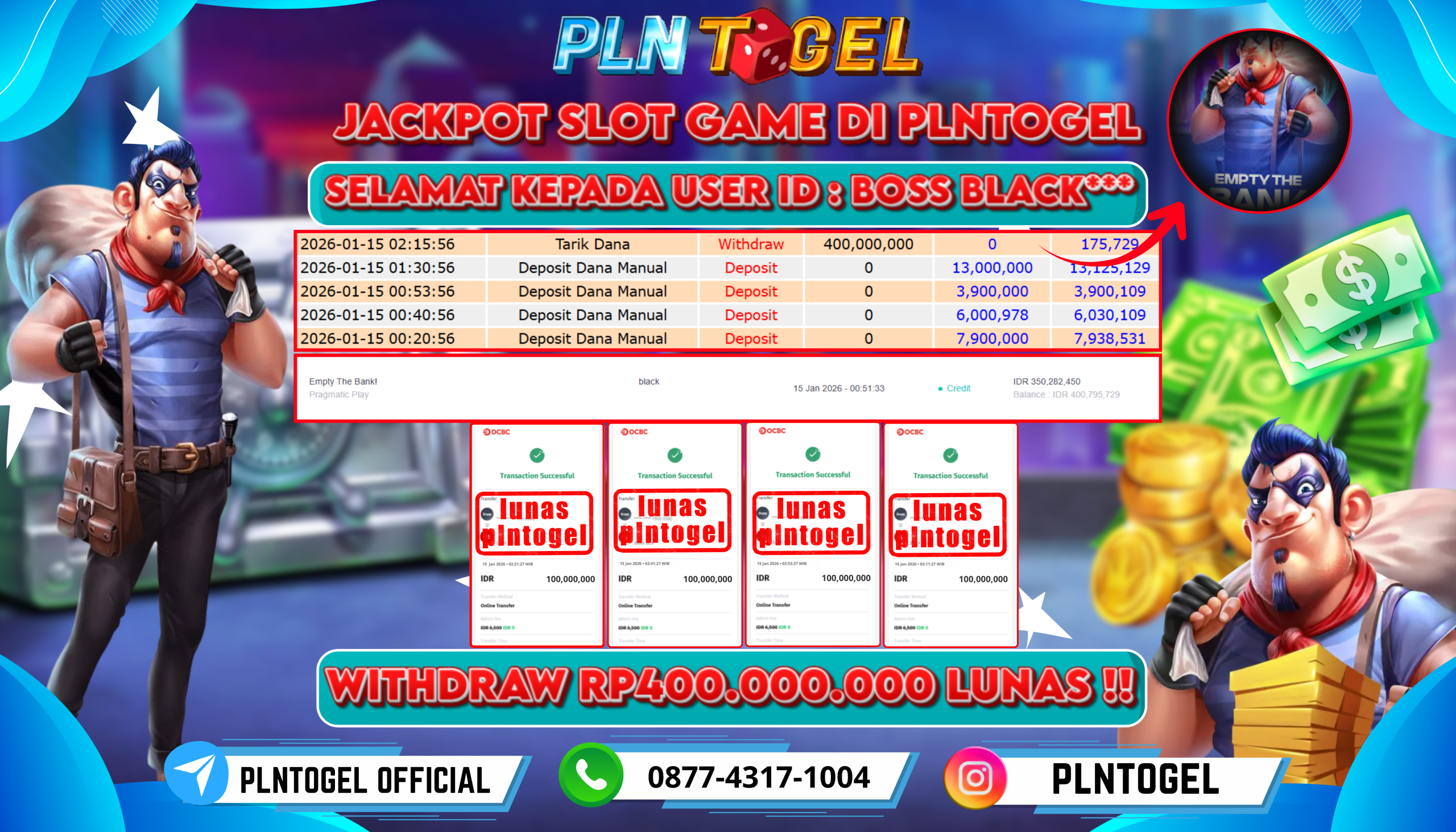 BUKTI JACKPOT SLOT GAME 15 Januari 2026 Posted by plntogel EMPTY THE BANK! KAMIS, 15 JANUARI 2026 RP 400,000,000,- SELAMAT KEPADA PEMENANG, SALAM JP Updated: 15 Januari 2026 at 04:41 ◀ PREDIKSI JITU BULLSEYE POOLS BUKTI JACKPOT TOGEL ONLINE ▶